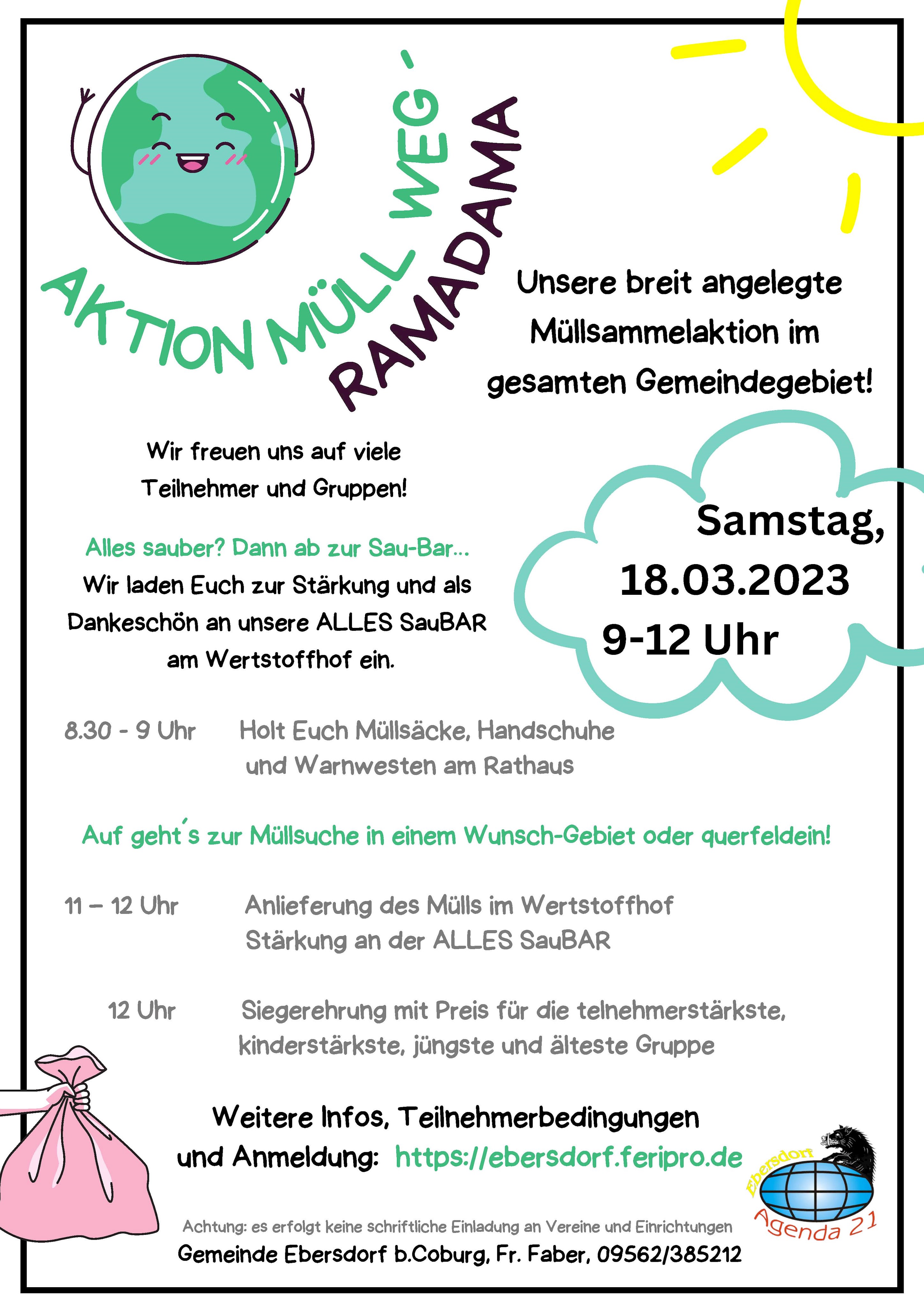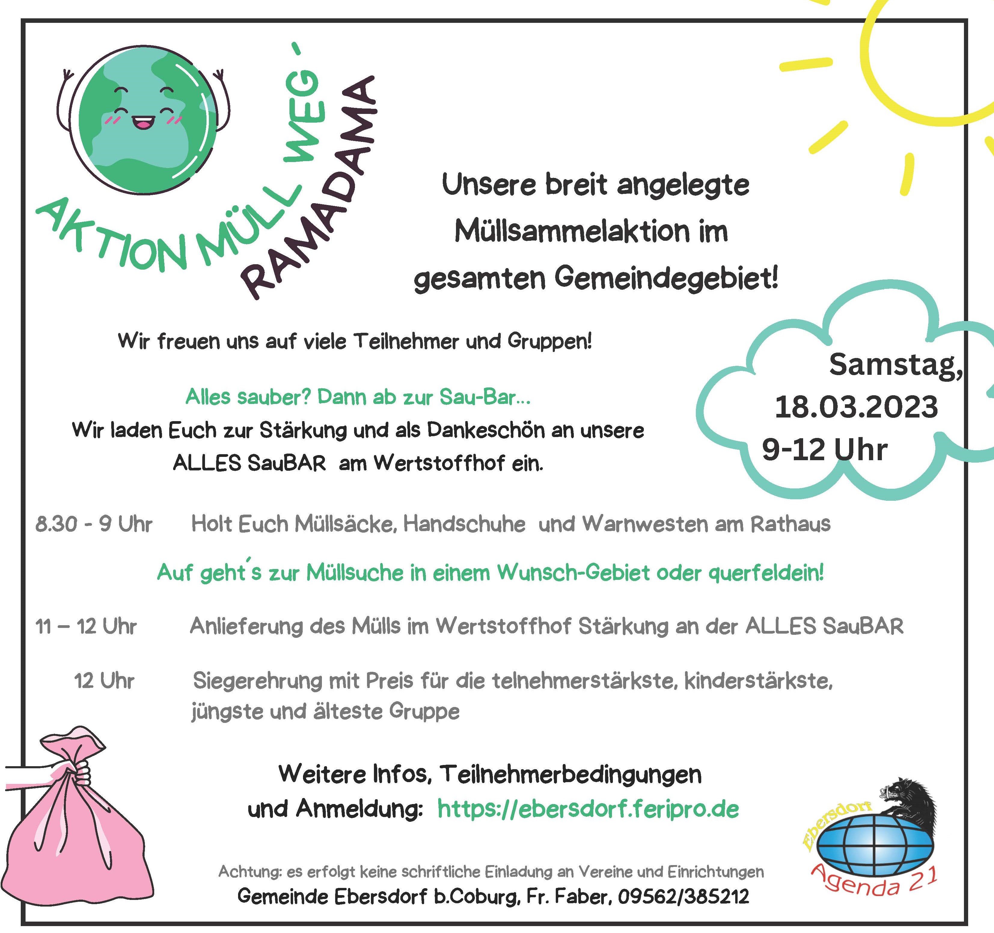 Meldung vom 21.03.2023 Ob Verein, Gruppe, Familien oder Einzelpersonen - viele fleißige Helfer haben unsere Umwelt von Müll, Abfall und Unrat befreit. Denn Müll gehört in den Müll!