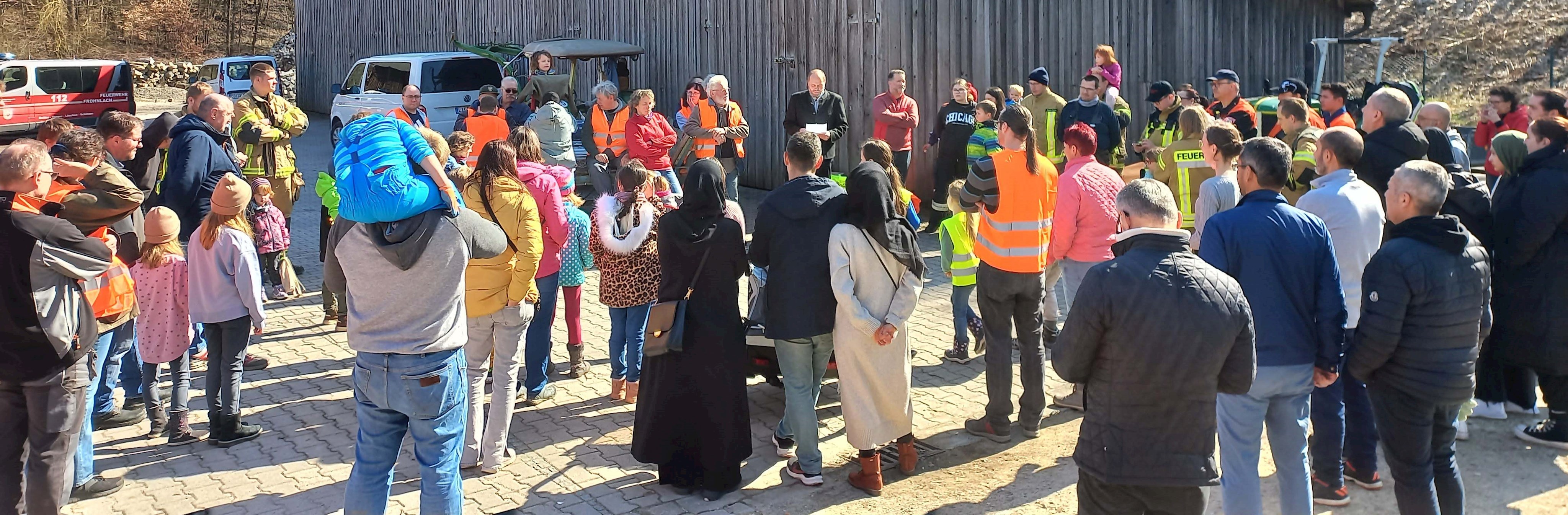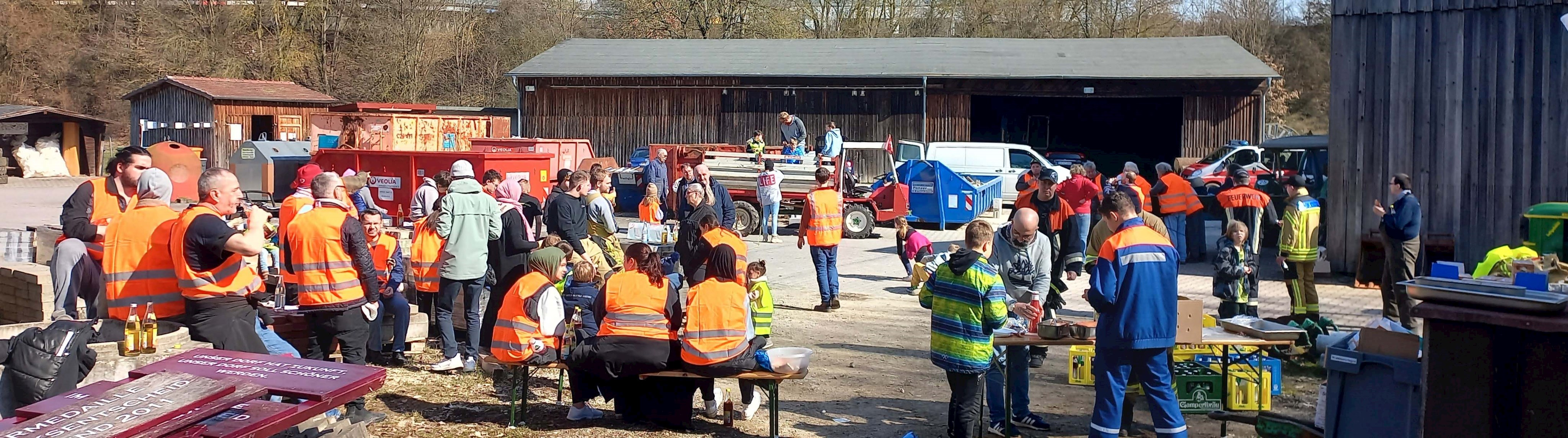Bei bestem Frühlingswetter packten am Samstag,18.03.23, nach langer coronabedingter Pause, 120 UmweltschützerInnen kräftig mit an und befreiten die Gemeinde von Müll und Unrat. Mit Warnweste, Handschuhen und Müllsäcken ausgestattet, ging es für die kleinen und großen TeilnehmerInnen, die sich vorwiegend in Gruppen organisiert hatten, in ihrem zugeteilten Einsatzbereich auf große Suche. Unterstützt durch vereinseigene Fahrzeuge, Kinderwägen, Traktoren oder auf Schusters Rappen ging es entlang der Straßen, dem Bahndamm und der Feld- und Wiesenwege. So konnte gemeinsam in kürzester Zeit jede Menge Müll gesammelt werden.