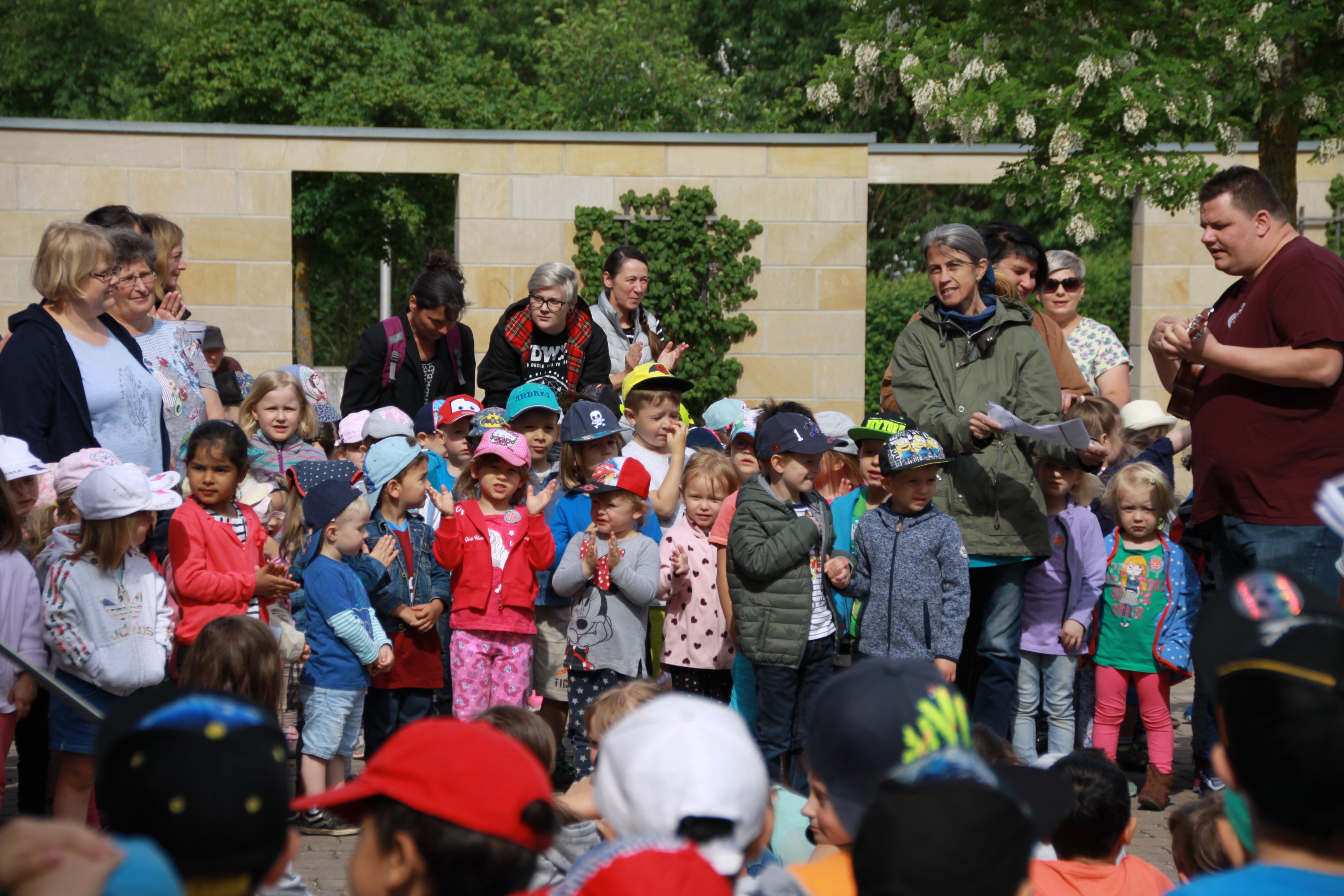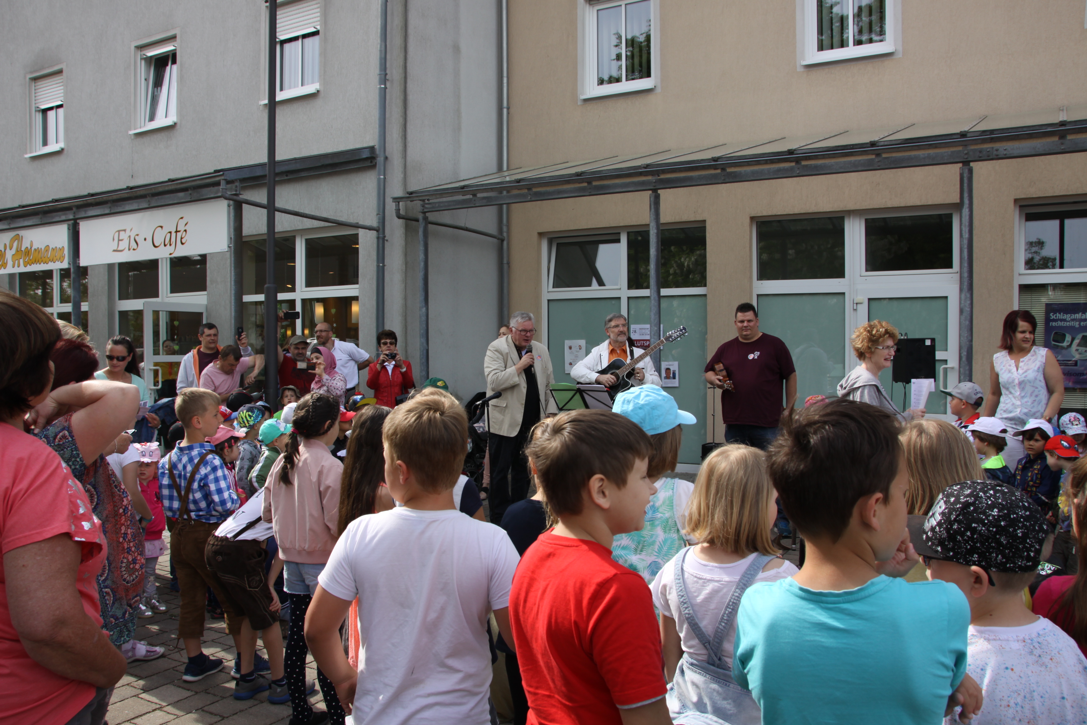 "Ohne Musik wäre das Leben ein Irrtum." Das wusste schon Friedrich Nietzsche. Aus diesem Grund haben sich auch dieses Jahr wieder die Kinderwelt St. Laurentius, die Katholische Kindertagesstätte St. Otto und die Grundschule zusammengeschlossen und einen Musiktag am Rathausplatz veranstaltet. Bei strahlendem Sonnenschein geben die jungen Sängerinnen und Sänger eine bunte Auswahl an Kinderliedern zum Besten. Begleitet werden Sie musikalisch von Philipp Kestel, Erzieher in der Kinderwelt St. Laurentius, und Landrat Michael Busch.