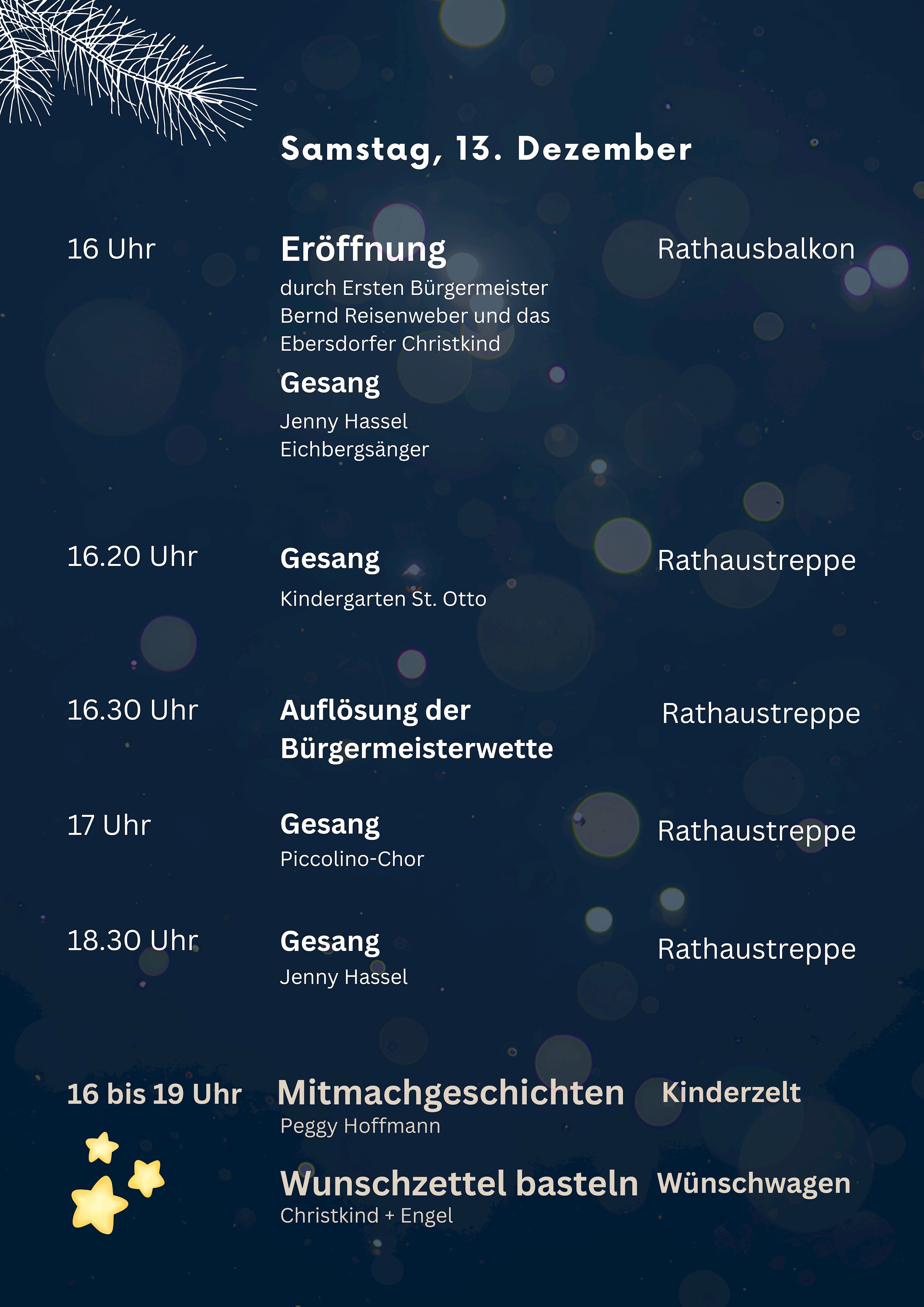 Meldung vom 03.12.2025 Am 13. und 14. Dezember findet zum zweiten Mal rund um den Rathausplatz die Ebersdorfer Weihnacht statt.