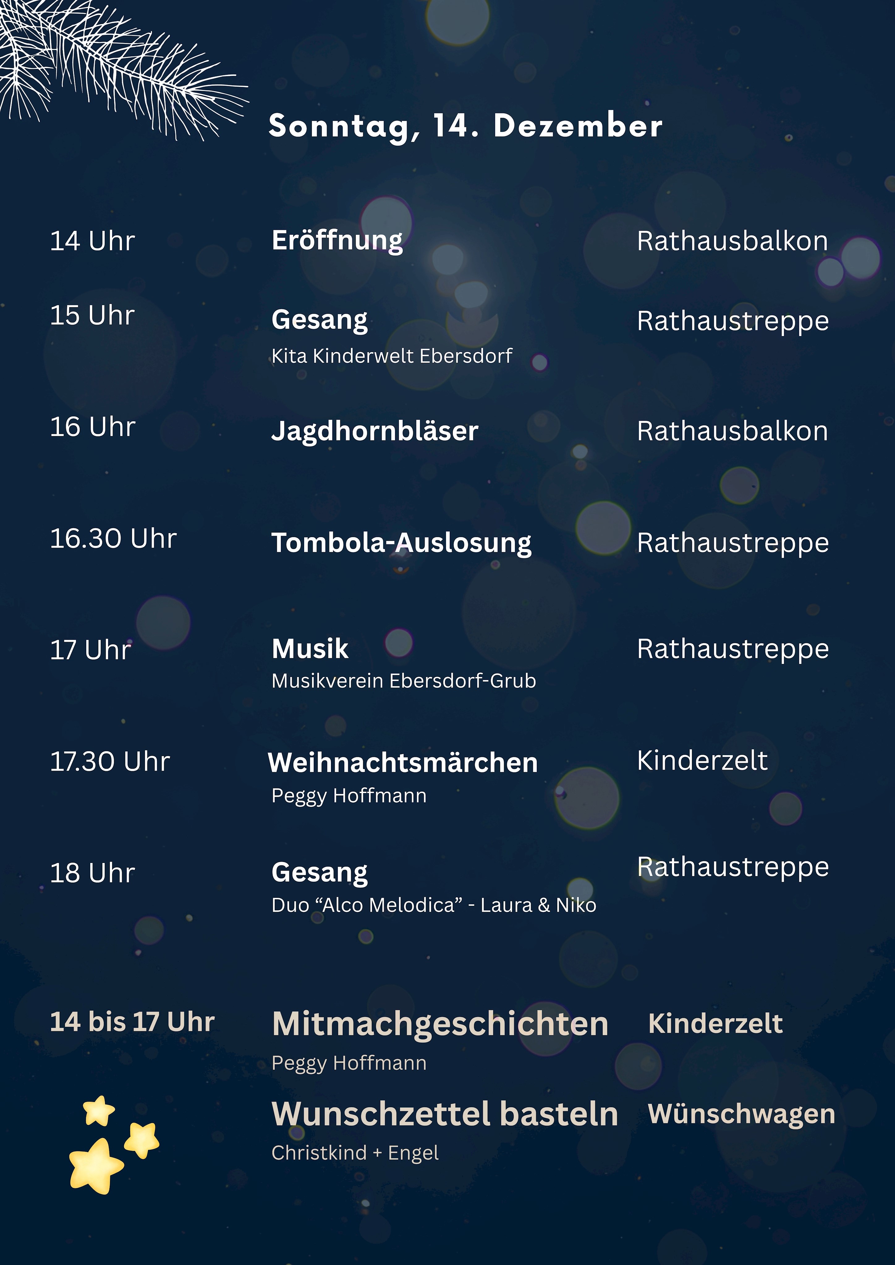 Wir freuen uns auf den Lichterzauber und die magische Weihnachtsstimmung mit vielen Besucherinnen und Besuchern in Ebersdorf.