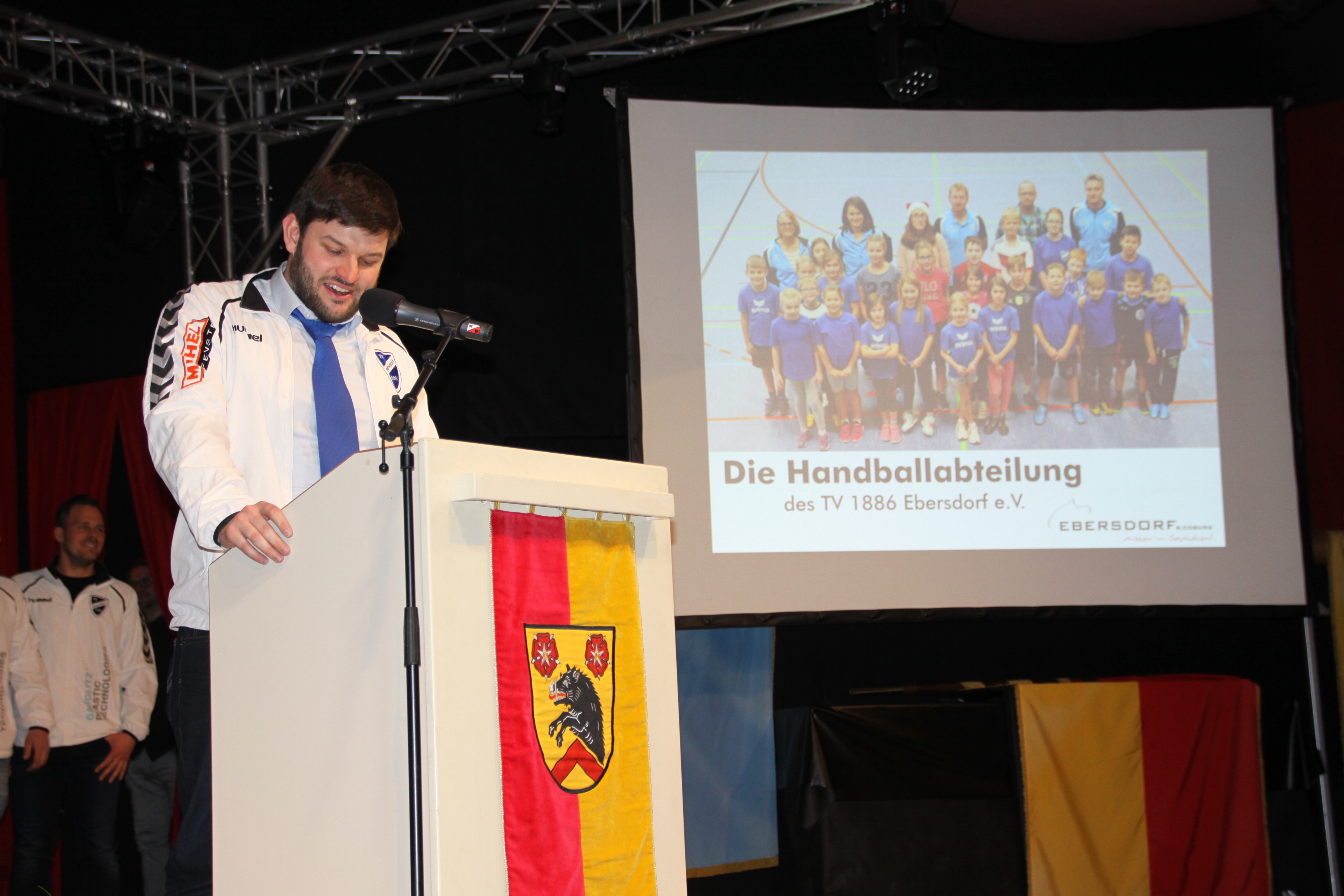 Die Handballabteilung des TV 1886 Ebersdorf e.V. konnte 2016 bereits ihr 90jähriges Bestehen feiern. War man 1984 noch im Fieber der Deutschen Meisterschaft, stand die Abteilung nach der Jahrtausendwende kurz vor dem Aus. Das jedoch wollten einige Mitglieder nicht hinnehmen und starteten einen Wiederbelegungsversuch, der mit großem Erfolg belohnt wurde. Mittlerweile zählt die Jugendabteilung vier Mannschaften im Spielbetrieb, plus einer gemischten E-Jugend und den „Minis“. Ein Spitzenwert im Coburger Land - mit steigender Tendenz. Die weibliche D-Jugend wurde bereits 2015 Meister der Bezirksliga West und die Herren bewährten sich in der Bezirksklasse Oberfranken West. Der Pfingstcup ist aufgrund seiner sehr guten Organisation sogar über die Grenzen Deutschlands hinaus bekannt und beliebt. Auf ähnlich viele Besucher kann die Handballabteilung am Maifeiertag und Vatertag blicken, wenn sie zur Einkehr an den Wallenbrunnen einlädt. Für dessen Erhalt engagieren sich die Ballsportler ebenfalls. So gebührte die Auszeichnung mit der Medaille in Gold für besondere Verdienste im sportlichen und kulturellen Bereich nicht Einzelpersonen, sondern all denen, die immer hinter der Handballabteilung standen und stehen.