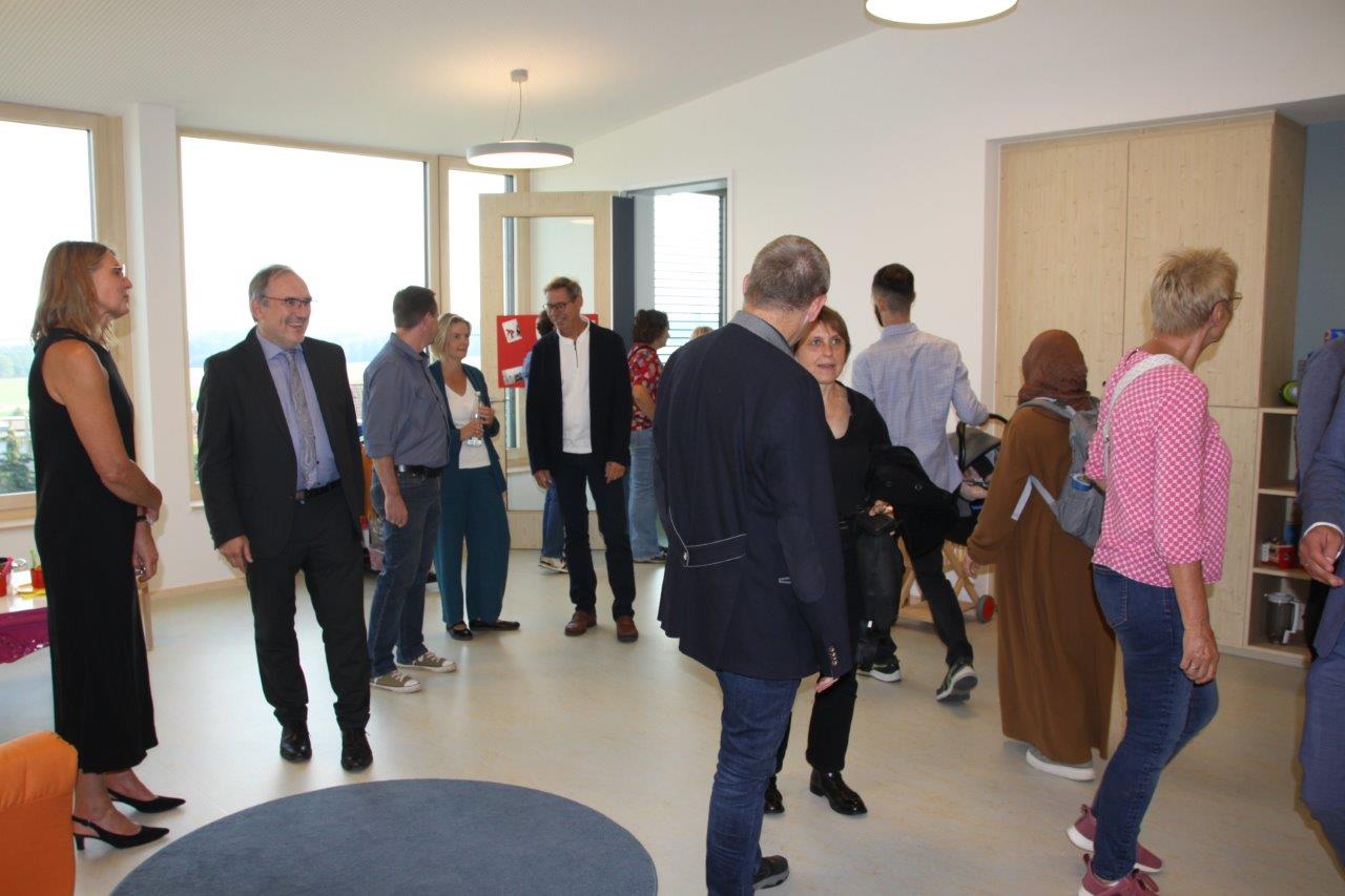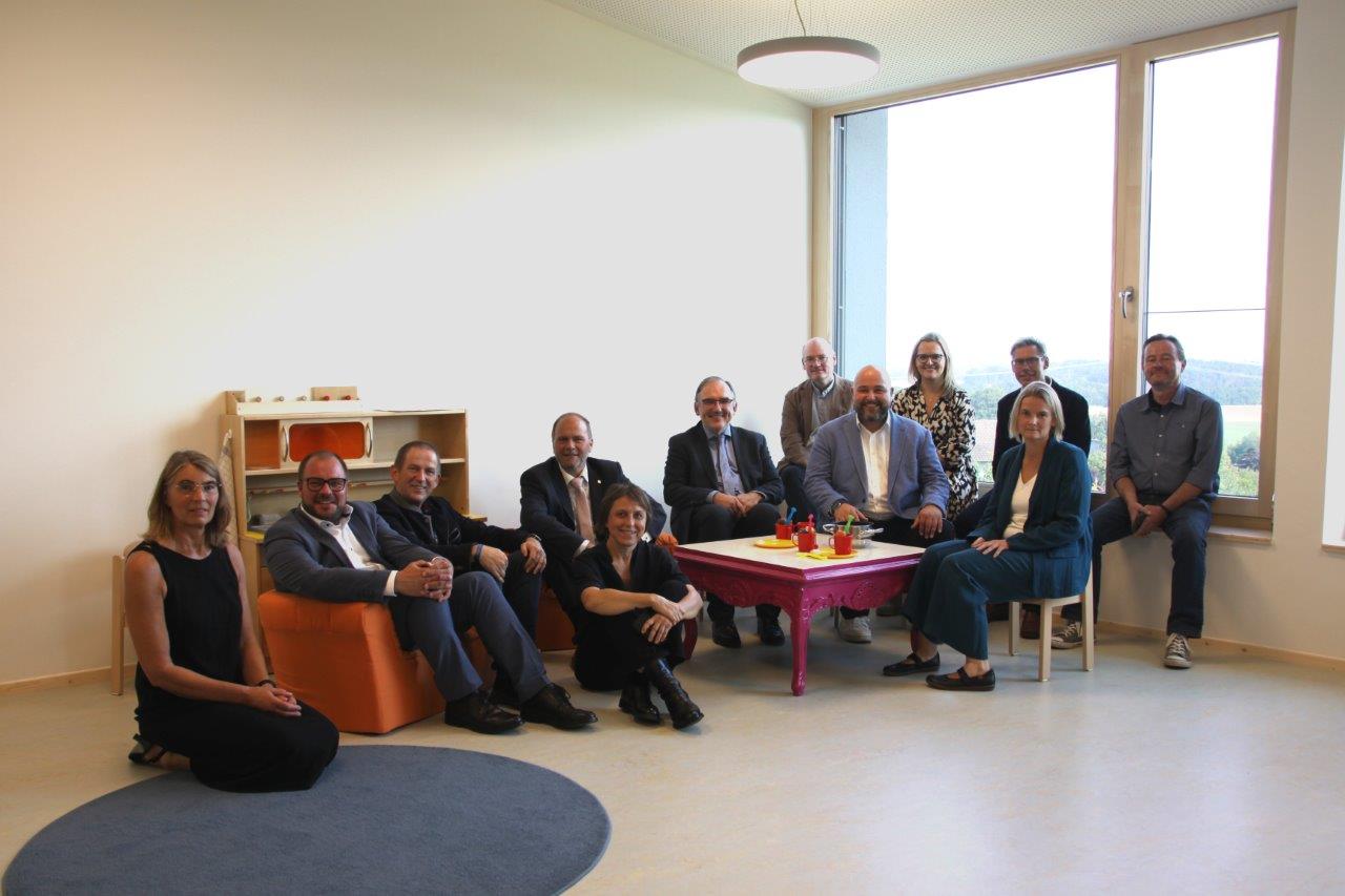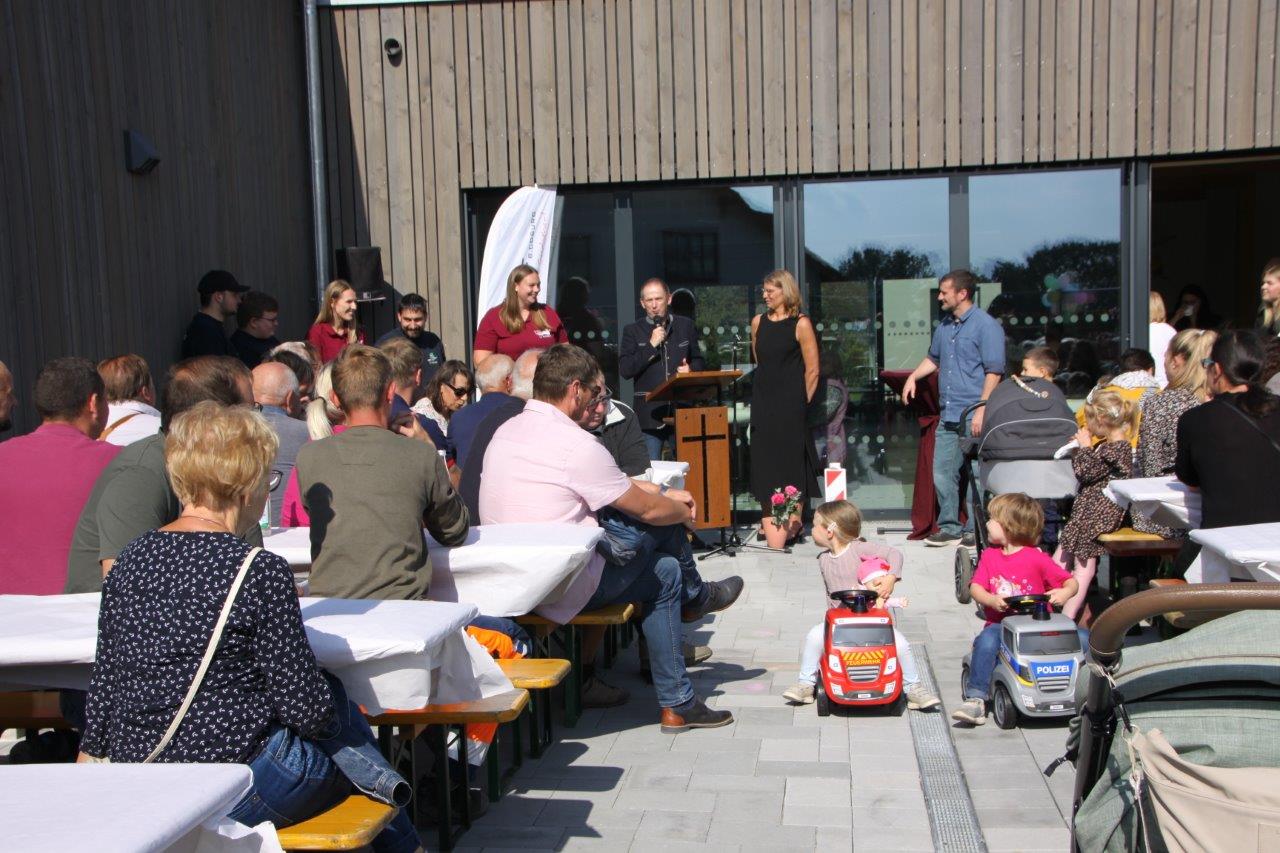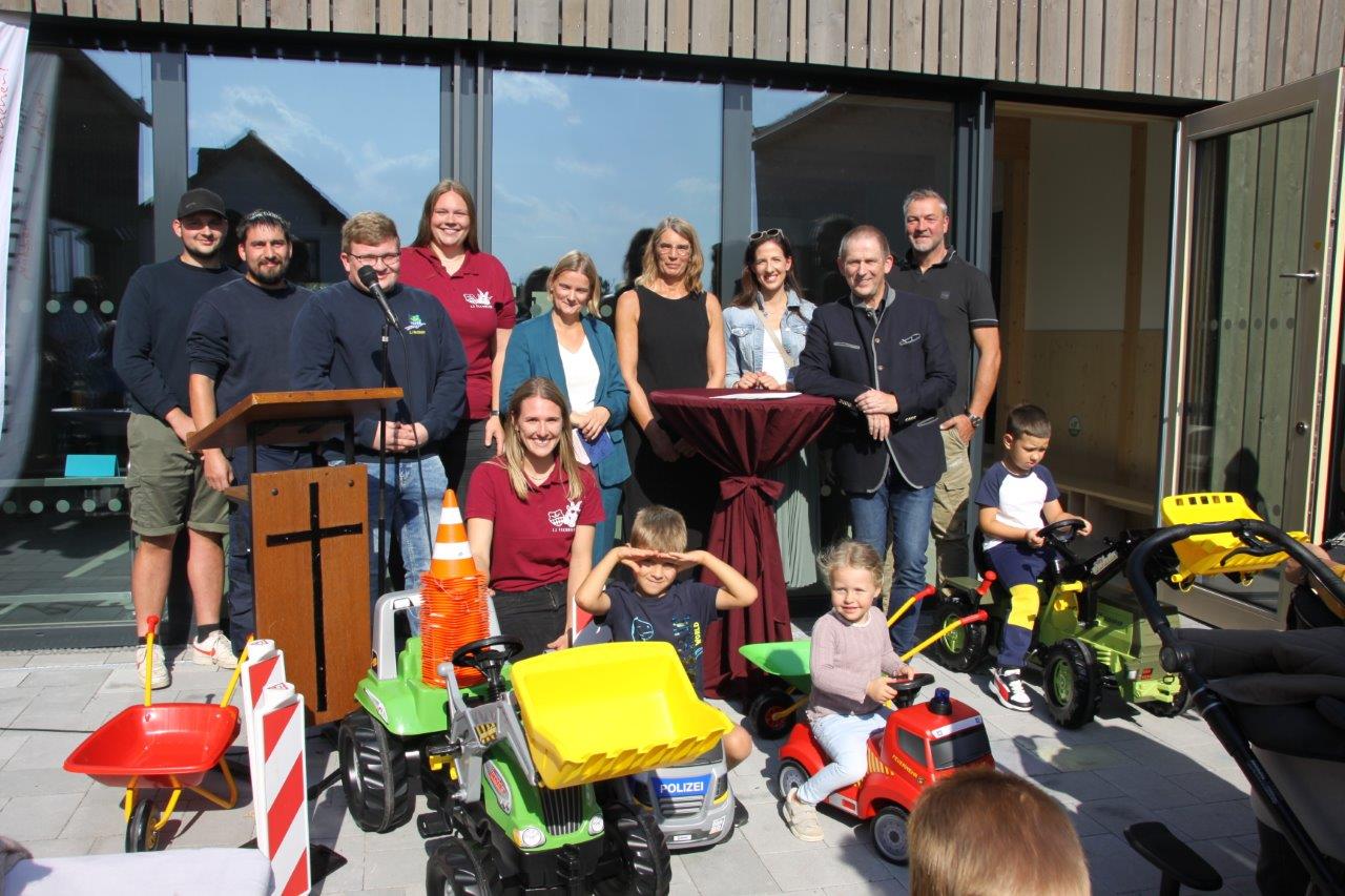 Lob und Bewunderung für das Bauvorhaben gab es von allen Grußwortrednern. Bundestagsabgeordneter Dr. Jonas Geissler lobte insbesondere den Mut zum Kita-Bau im ländlichen Raum und freute sich über "kleine Wege für kleine Füße". Martin Mittag, der sich als Landtagsabgeordneter bei Staatsministerin Ulrike Scharf tatkräftig für das Projekt einsetzte, unterbrach extra die Klausurtagung in Kloster Banz um den Erfolg zu feiern. Für Landrat Sebastian Straubel unterstreicht die neue Einrichtung die sehr gute Kinderbetreuungsquote im Landkreis.