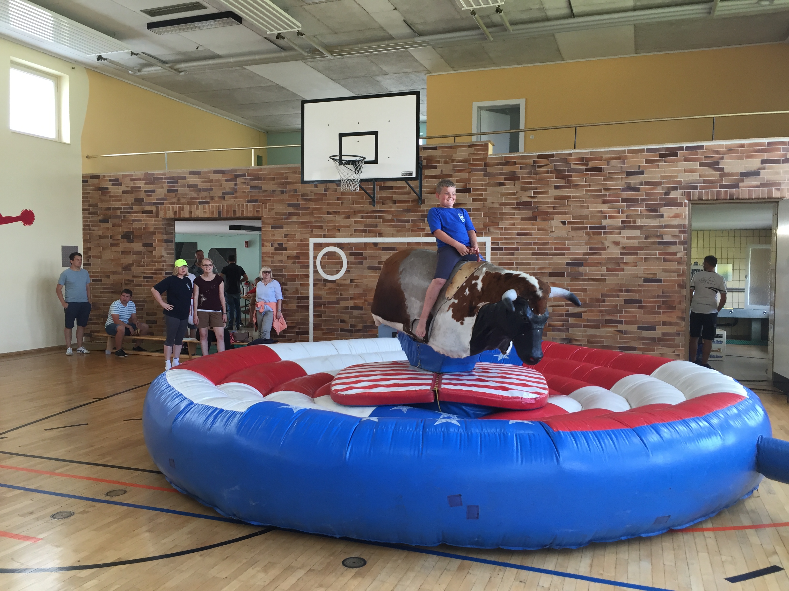 In der Schulturnhalle warteten nicht nur leckere Kuchen, sondern auch Bull-Riding und eine Hüpfburg auf viele Besucher.