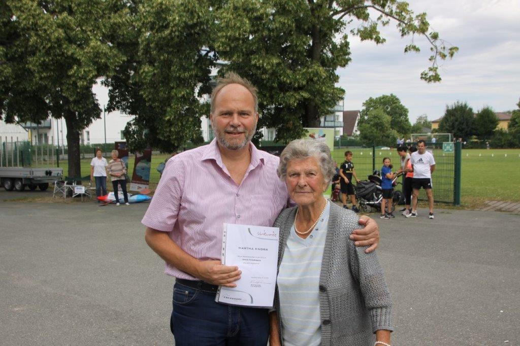 Gemeinsam mit seinem Bürgermeisterkollegen Jürgen Heymann und Jugendbeauftragtem Alexander Knorr nahm Bürgermeister Bernd Reisenweber die Ehrung der erfolgreichen Sportlerinnen und Sportler aus dem Jahr 2022 vor. Besonders herausragend war dabei die Ehrung von Martha Knorr, die mit stolzen 97 Jahren die älteste Teilnehmerin am Gemeindesportfest 2022 war.