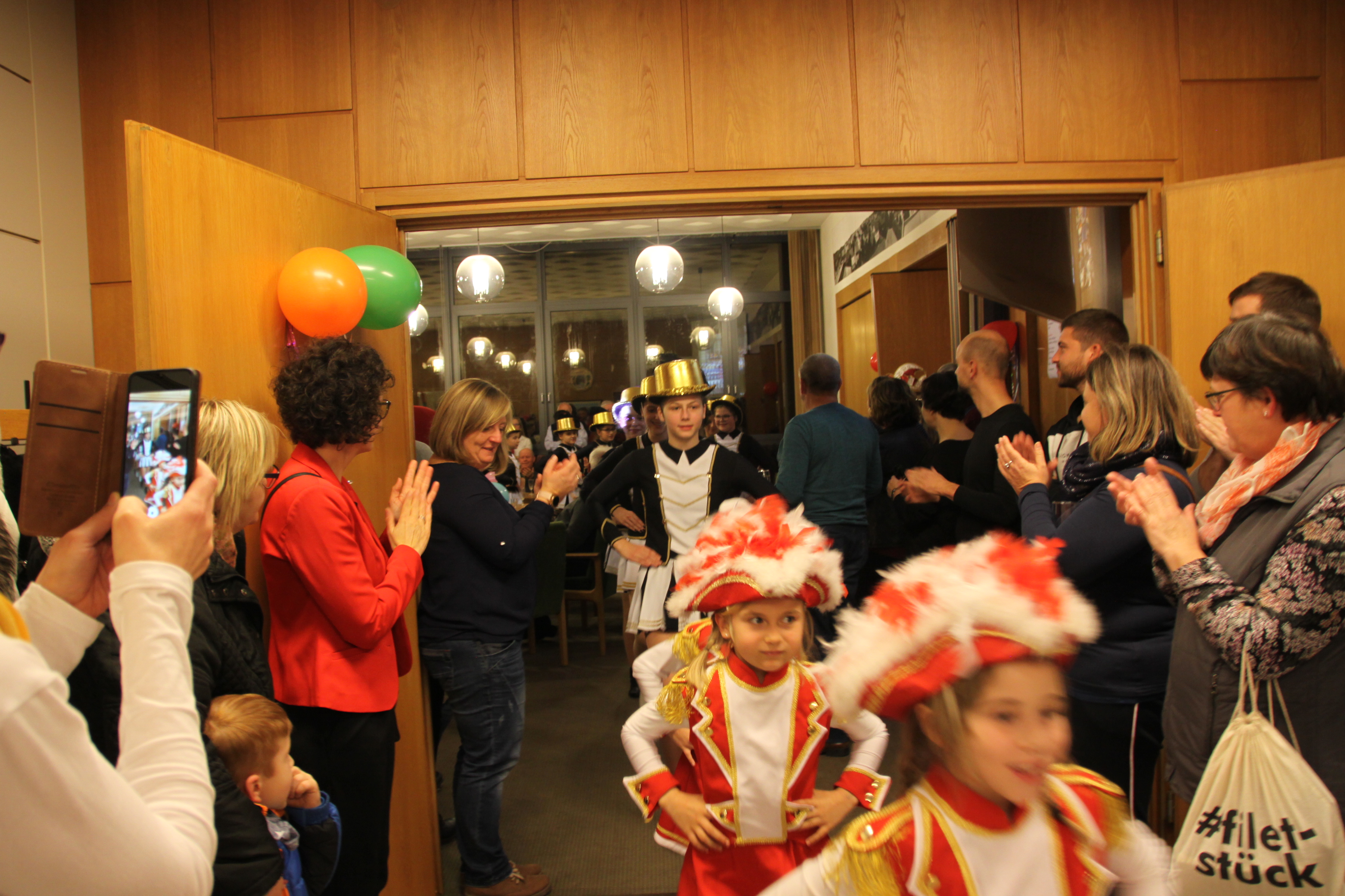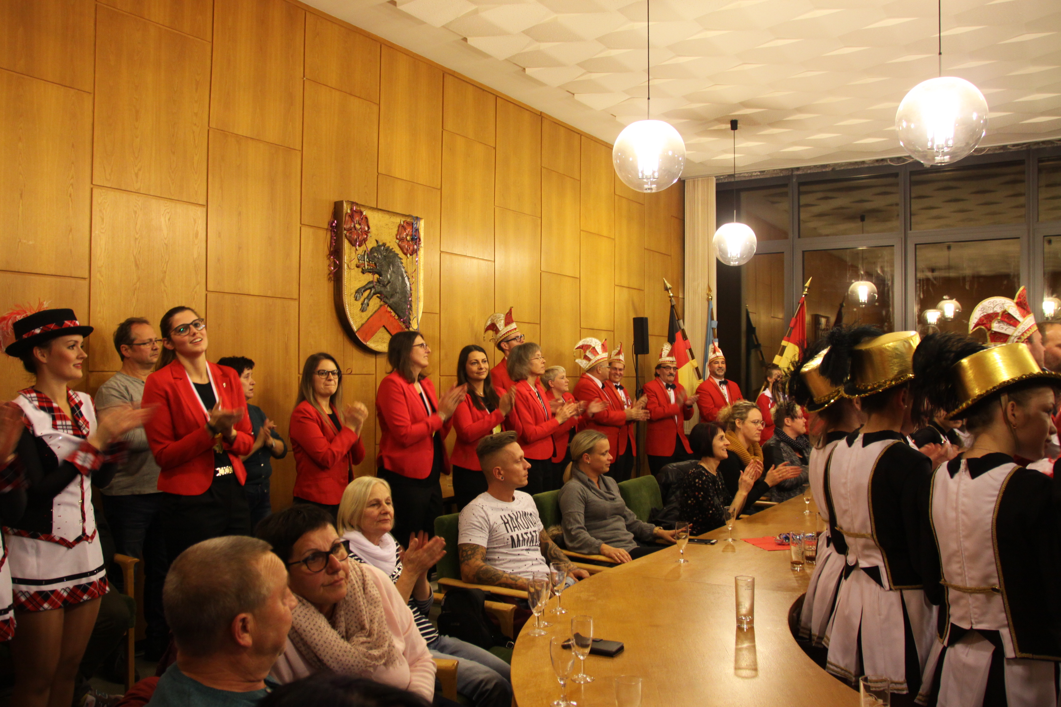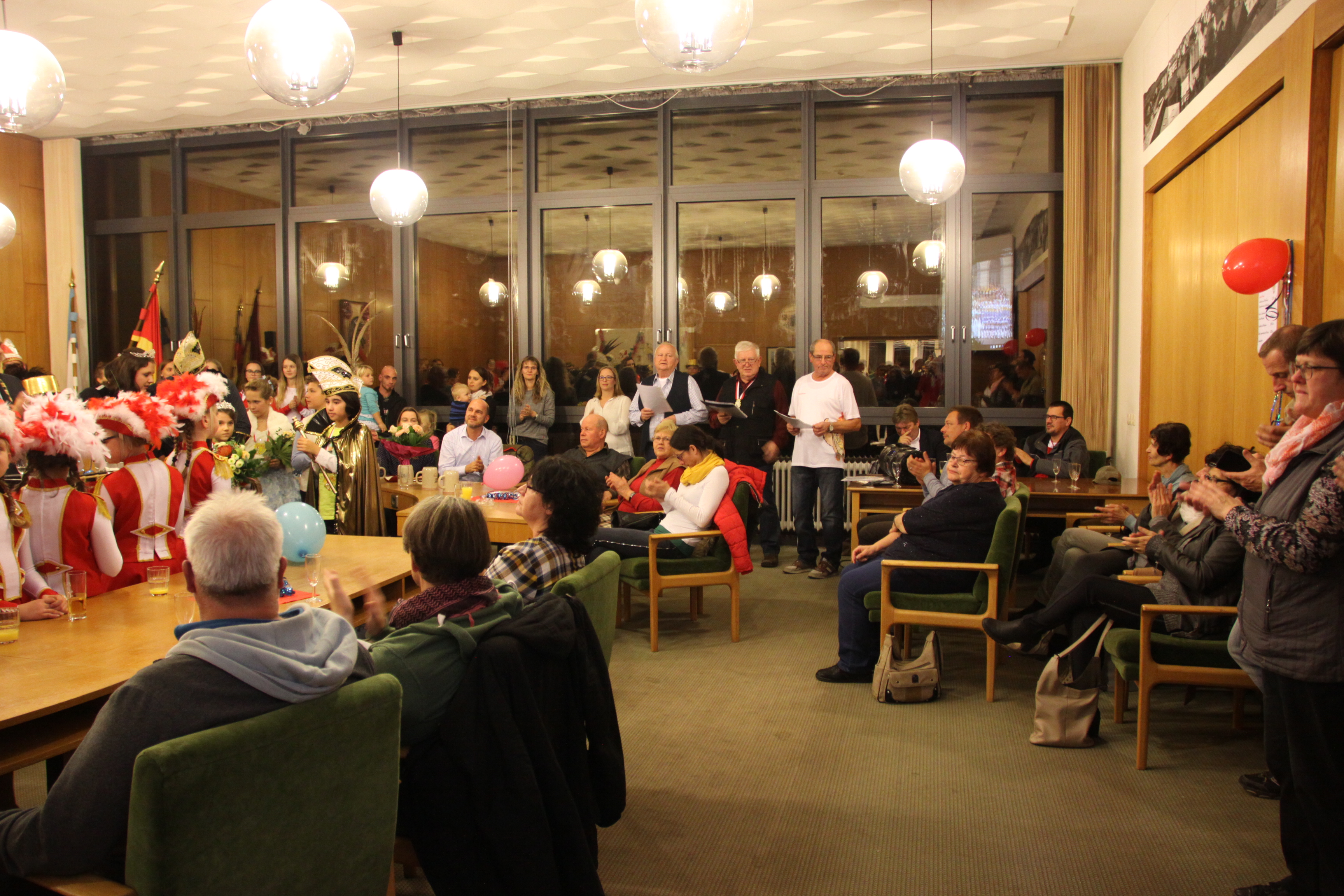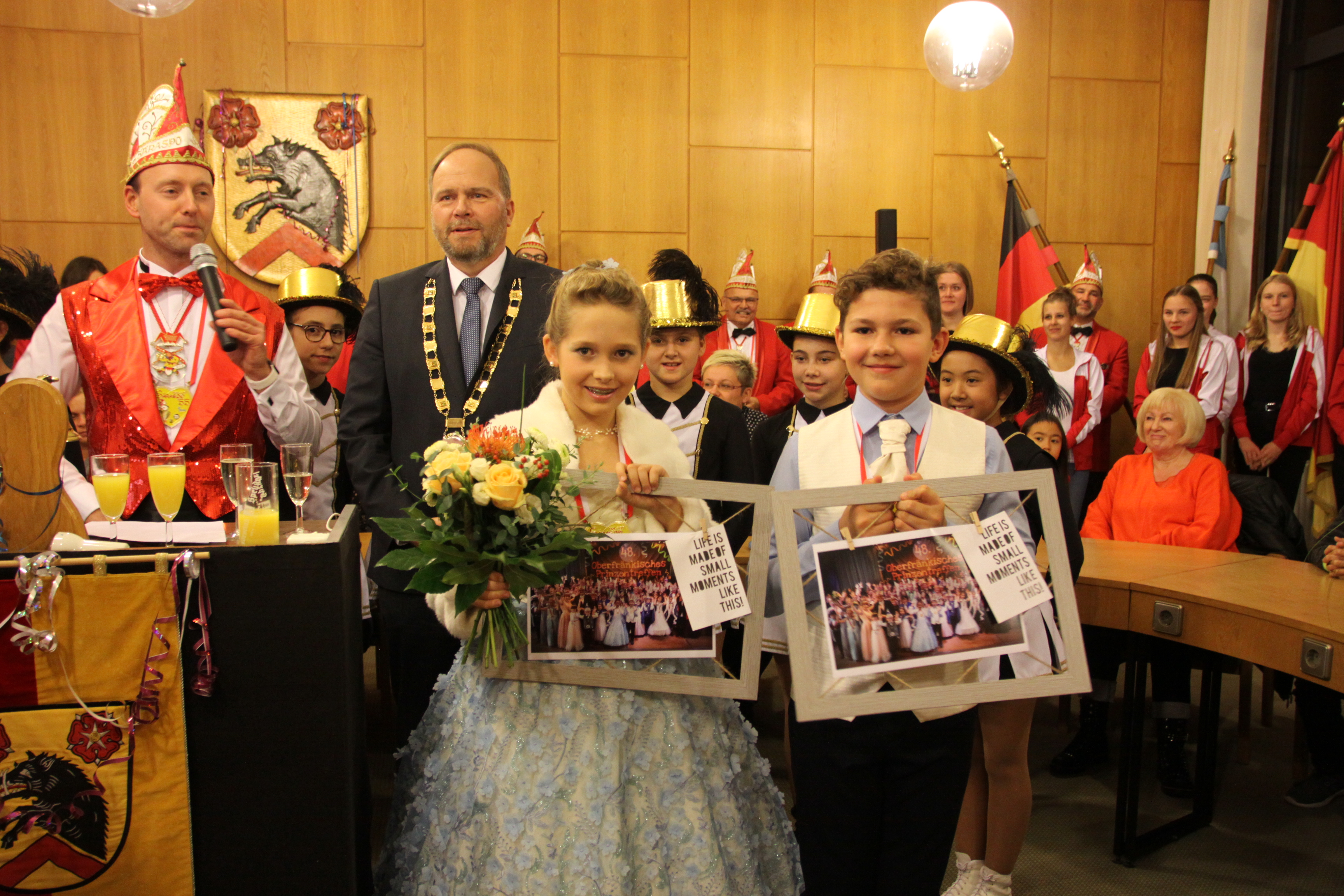 Bei so viel Frohsinn fiel es Erstem Bürgermeister Bernd Reisenweber nicht schwer, den Rathausschlüssel abzugeben. Für das neue Prinzenpaar hatte er auch sofort eine Aufgabe parat: „ich freue mich darauf, dass ihr die kommende Gemeinderatssitzung am 19.11.19 leitet und hoffentlich genauso viele interessierte Zuhörer mitbringt wie heute“, scherzte Reisenweber.