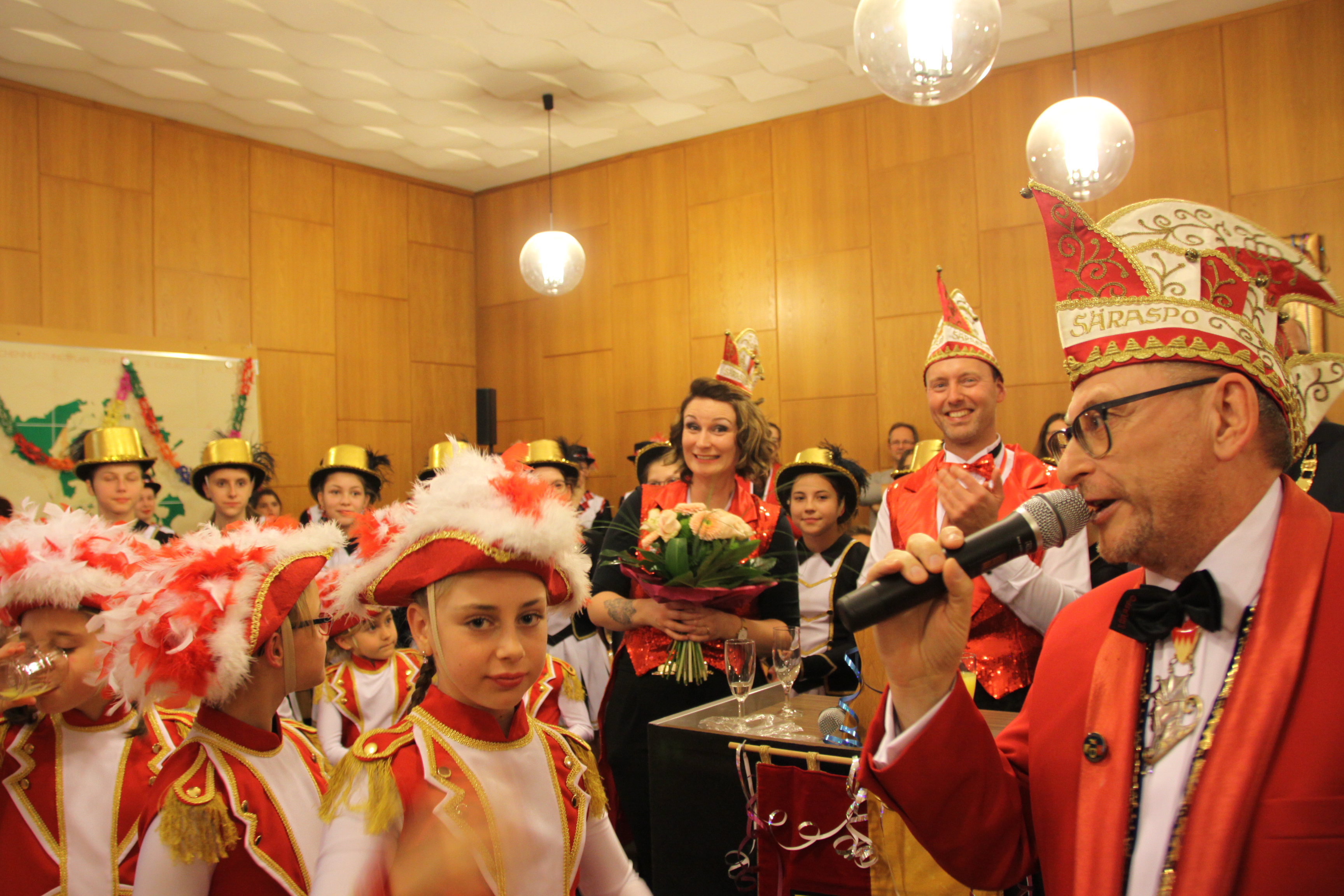 Dann galt es das große Geheimnis zu lüften. In der Session 2019/2020 regieren das Säraspo Narrenschiff im Nachwuchsbereich Kinderprinzessin Amelie I. (Schott) und Kinderprinz Marco I. (Roos). Amelie kennt sich auf der Säraspo-Bühne schon bestens aus, da sie seit Jahren in Purzel- und Kindergarde aktiv ist. Ihren Prinz Marco zu überzeugen fiel ihr nicht schwer, da die beiden schon länger befreundet sind.