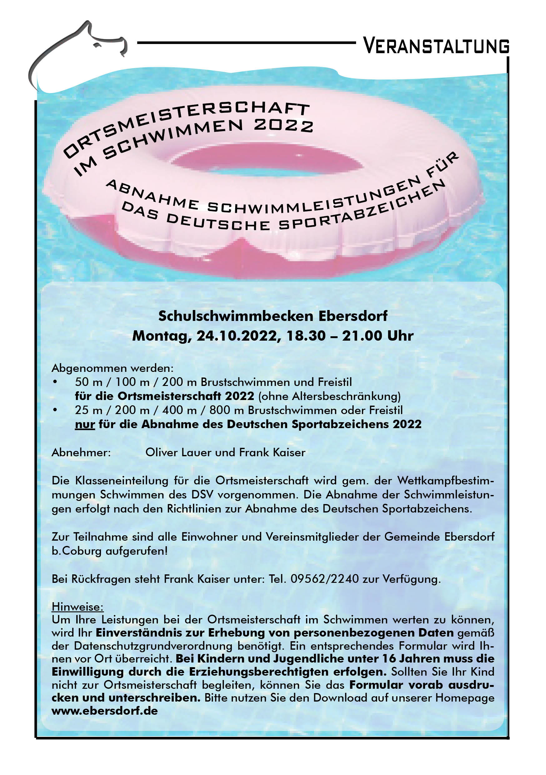 Um das Deutsche Sportabzeichen abzulegen, ist ein aktueller Schwimmnachweis nötig!
