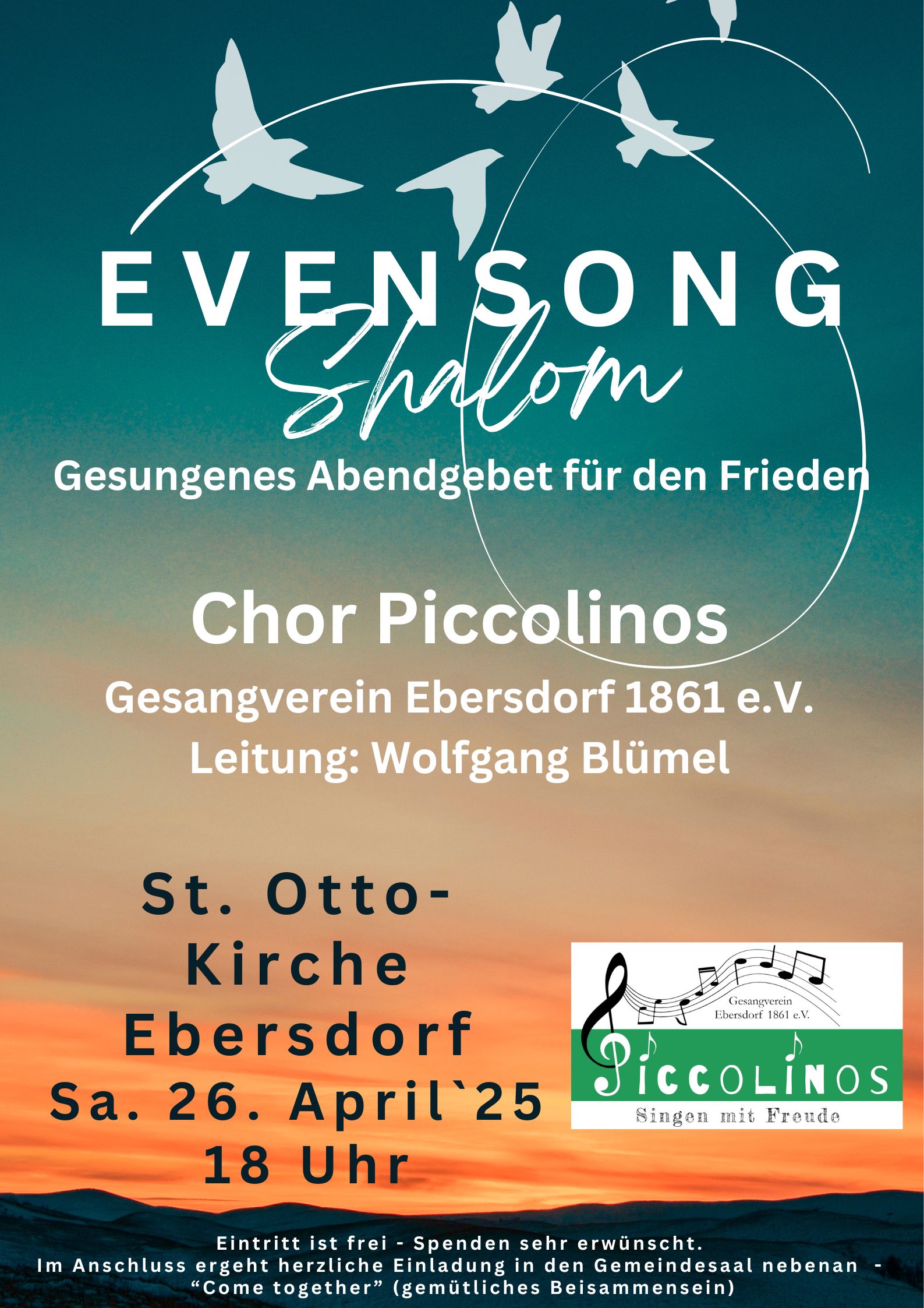 Im Anschluss an den Evensong besteht Gelegenheit zum Austausch mit den Chormitgliedern bei einem gemütlichen Beisammensein.
