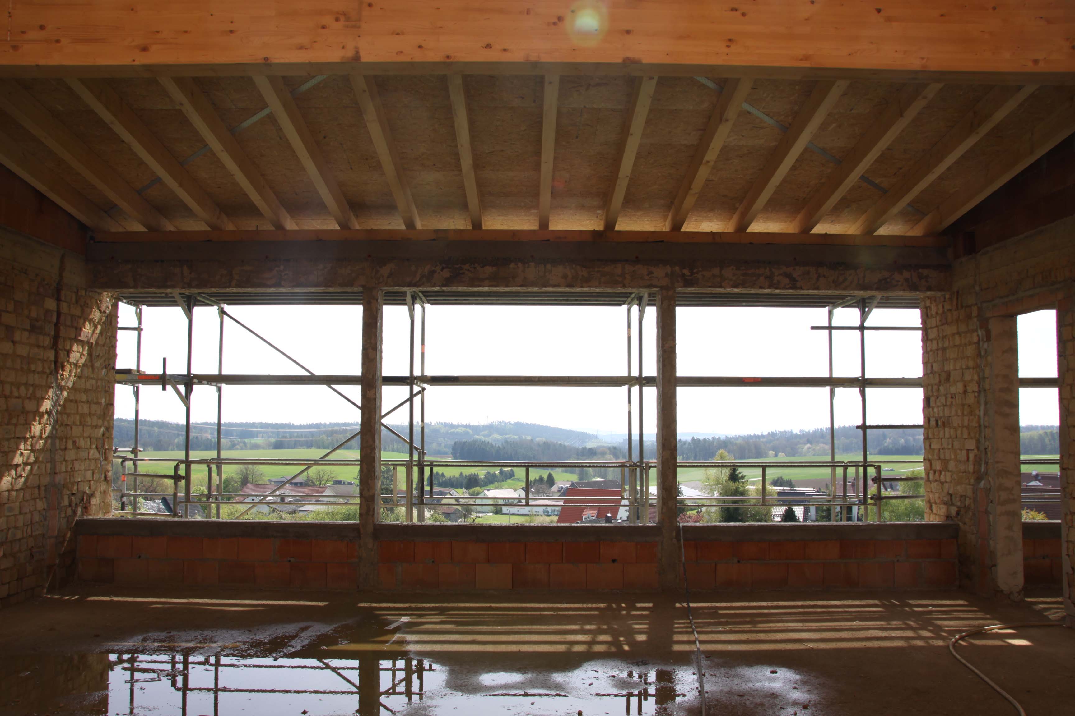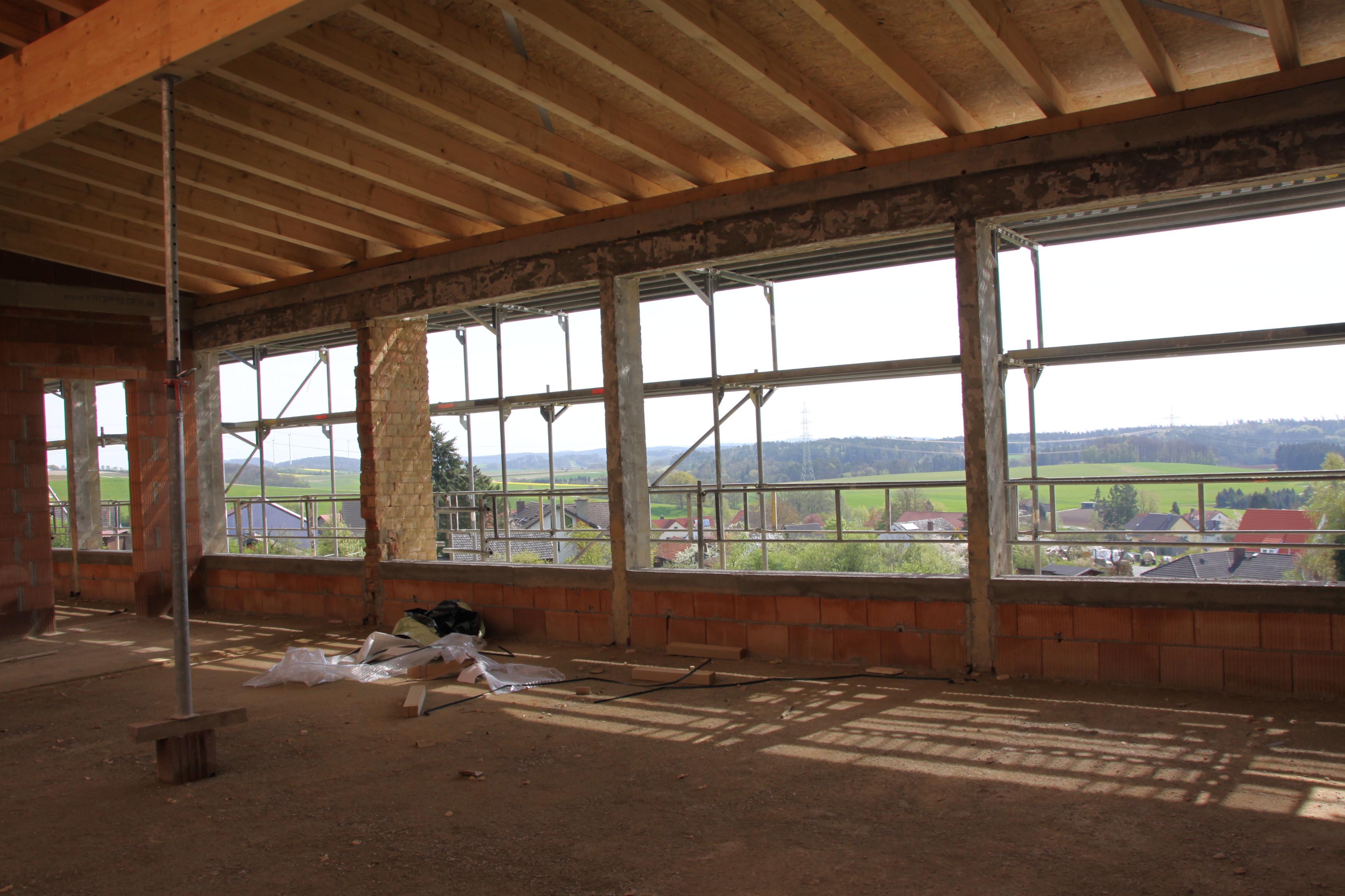 Die Raumaufteilung ist bereits gut erkennbar. Wobei die Räume besonders durch den herrlichen Ausblick bestechen und durch die großen Fenster und hohen Decken besonders großzügig wirken. Bei einer ersten Begehung konnte man sich schon gut vorstellen, welchen Spaß die Kinder dort einmal haben werden.