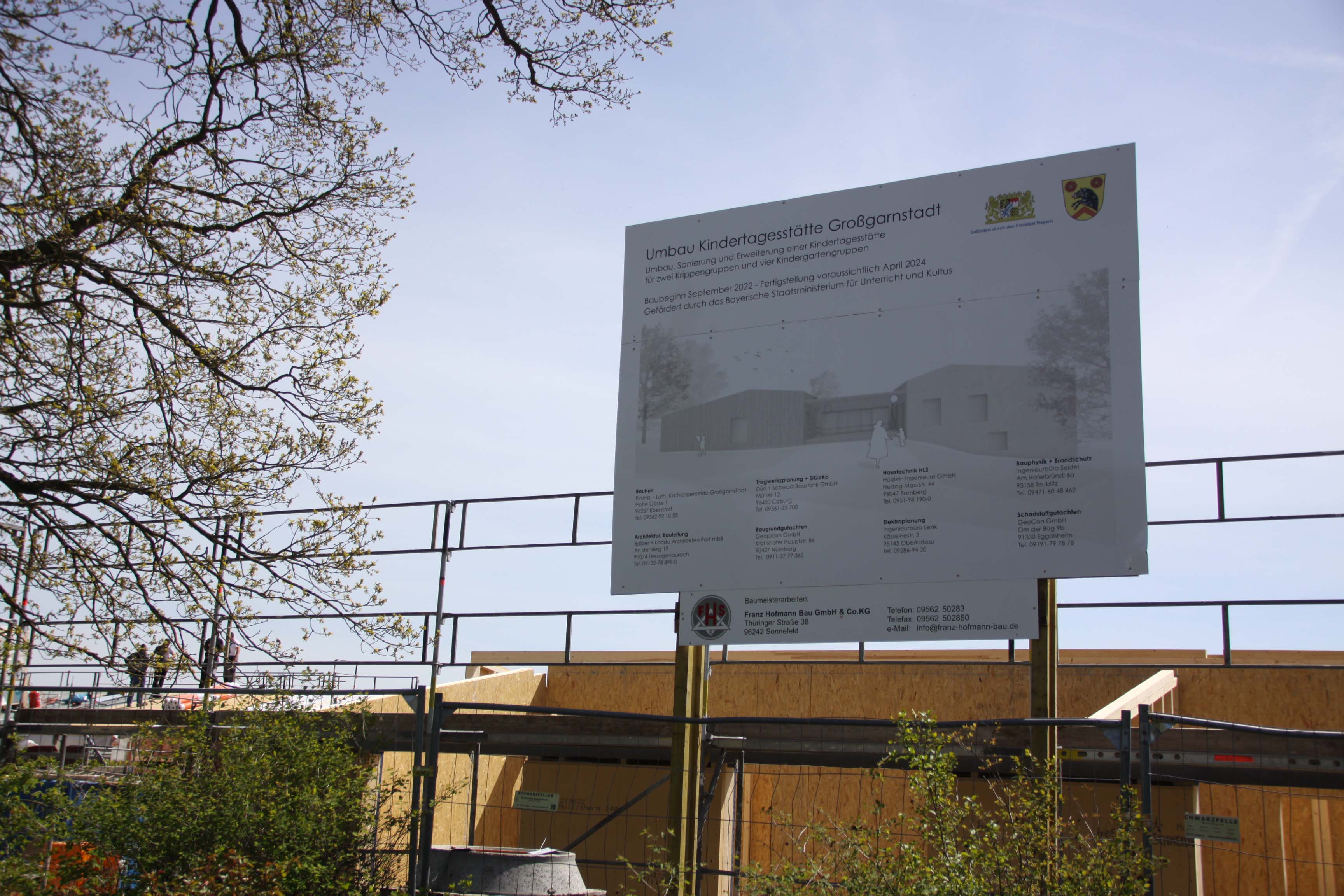 Seit 2021 laufen die Arbeiten für den Um- und Neubau der Kindertagesstätte in der ehemaligen Schule Großgarnstadt. Die Planungen sind abgeschlossen, der Förderantrag ist gestellt und der Baubeginn erfolgte 2022 mit einer umfassenden Entkernung. Voraussichtlich ab 2024 können 104 Kindergartenkinder und 24 Krippenkinder in die neue Kita einziehen.